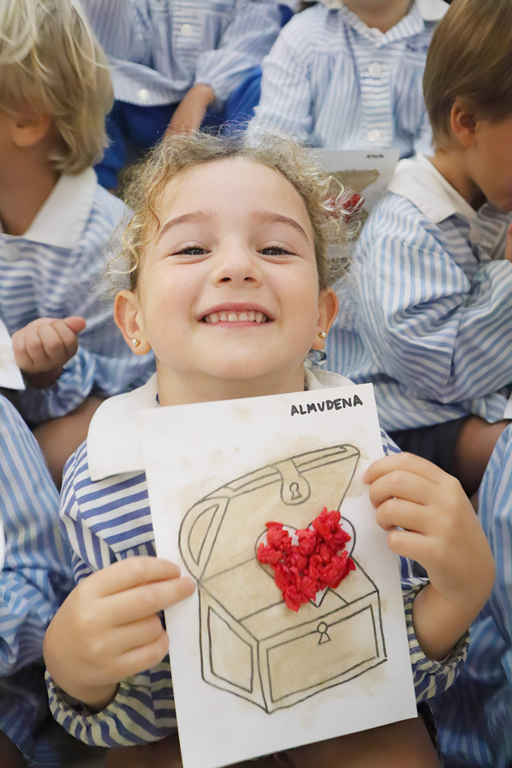 Des d’Infantil ens apropem a la seva figura tot observant la seva mirada serena i acollidora. També ens fixem en els elements que l’envolten i en el que representen: els llibres, el treball, la natura… Tots ells ens parlen dels valors que volem transmetre als infants.