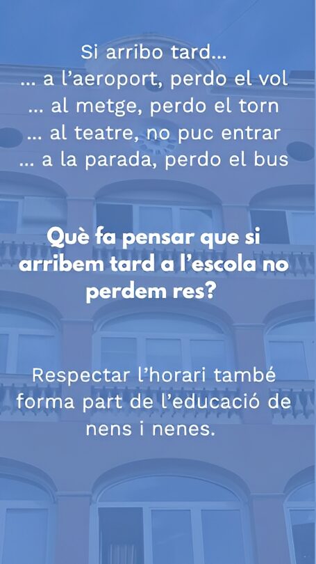 El compromís amb la puntualitat beneficia tant els alumnes com la dinàmica general de l’aula. Fomentar aquest valor des de petits és essencial per al seu desenvolupament integral i per crear un ambient escolar més harmoniós i productiu. Si tots arribem puntuals, tots sortim guanyant.